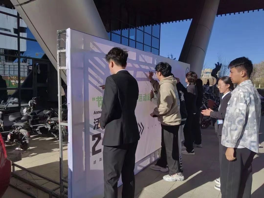 共青团裸聊直播 “环保减碳进行时”——2023年绿色生活月系列活动于11月5日至11月25日顺利举行。本次活动学院领导高度重视,并且与同学们一同参加此次启动仪式,其中院党委副书记杨新存发表讲话,表达了对裸聊直播 的未来的期待与对此次活动的美好祝愿,各位领导与同学们一同观看节能减排宣传短片,并由领导亲自颁发节能减排宣传大使聘书,举行授旗仪式,还与同学们一同前往签名墙签名留念。